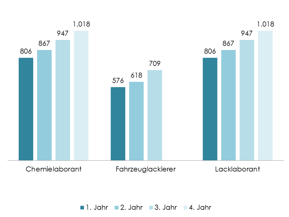 Jeder Lacklaborant durchläuft vor seinem Start in dem Beruf eine 3.5-jährige Ausbildung. Diese wird sogar überdurchschnittlich hoch vergütet. Schon im ersten Jahr erhältst Du monatlich einen Betrag von 806 Euro. Im zweiten sind es schon 867 Euro, im dritten 947 und im letzten Jahr 1.018 Euro. Nach Beendigung Deiner Ausbildung kannst Du Dich auf ein Gehalt von 1.900 bis 2.800 Euro freuen. Letztendlich hängt das aber von Deiner Erfahrung und Deinem Arbeitgeber ab.